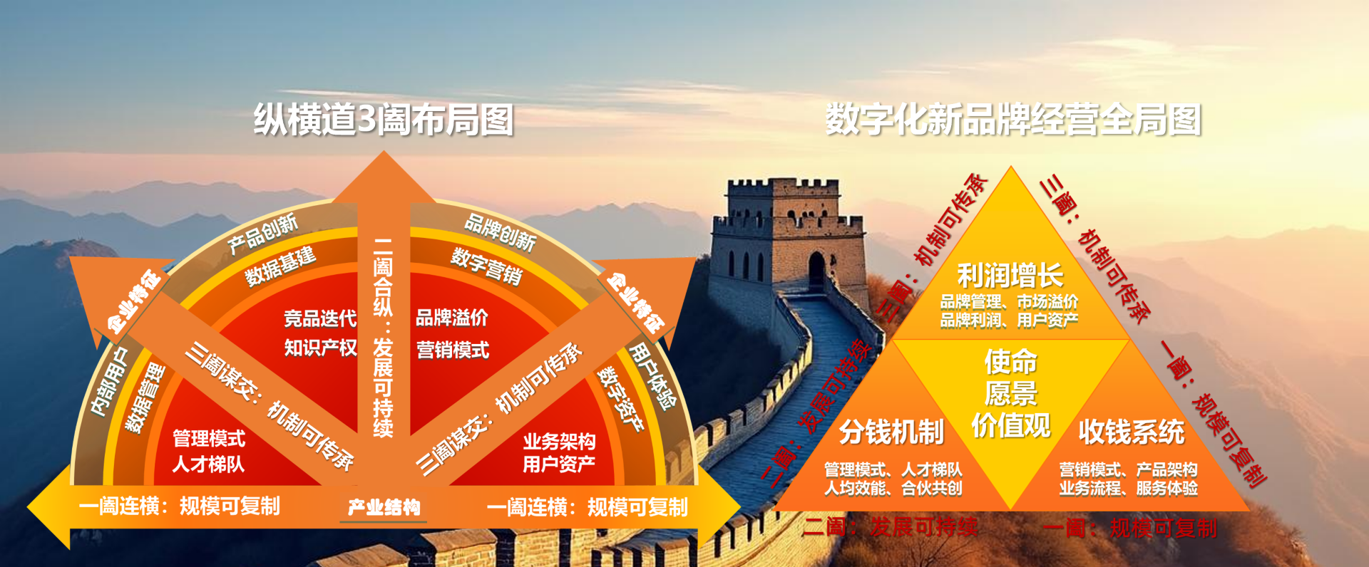 “为品牌升级立命、为持续增长定心”的品牌使命,纵横有道,以2000+管理顾问、400+品牌咨询、100+深度陪跑实践,纵横道3阖可持续金字塔、5维竞争力模型、6度体验罗盘等原创版权数字化商业架构,专注中小企业管理模式创新、品牌价值升级、业绩持续增长陪伴式辅导落地,实现中小企业可落地可复制的数字化商业成果。