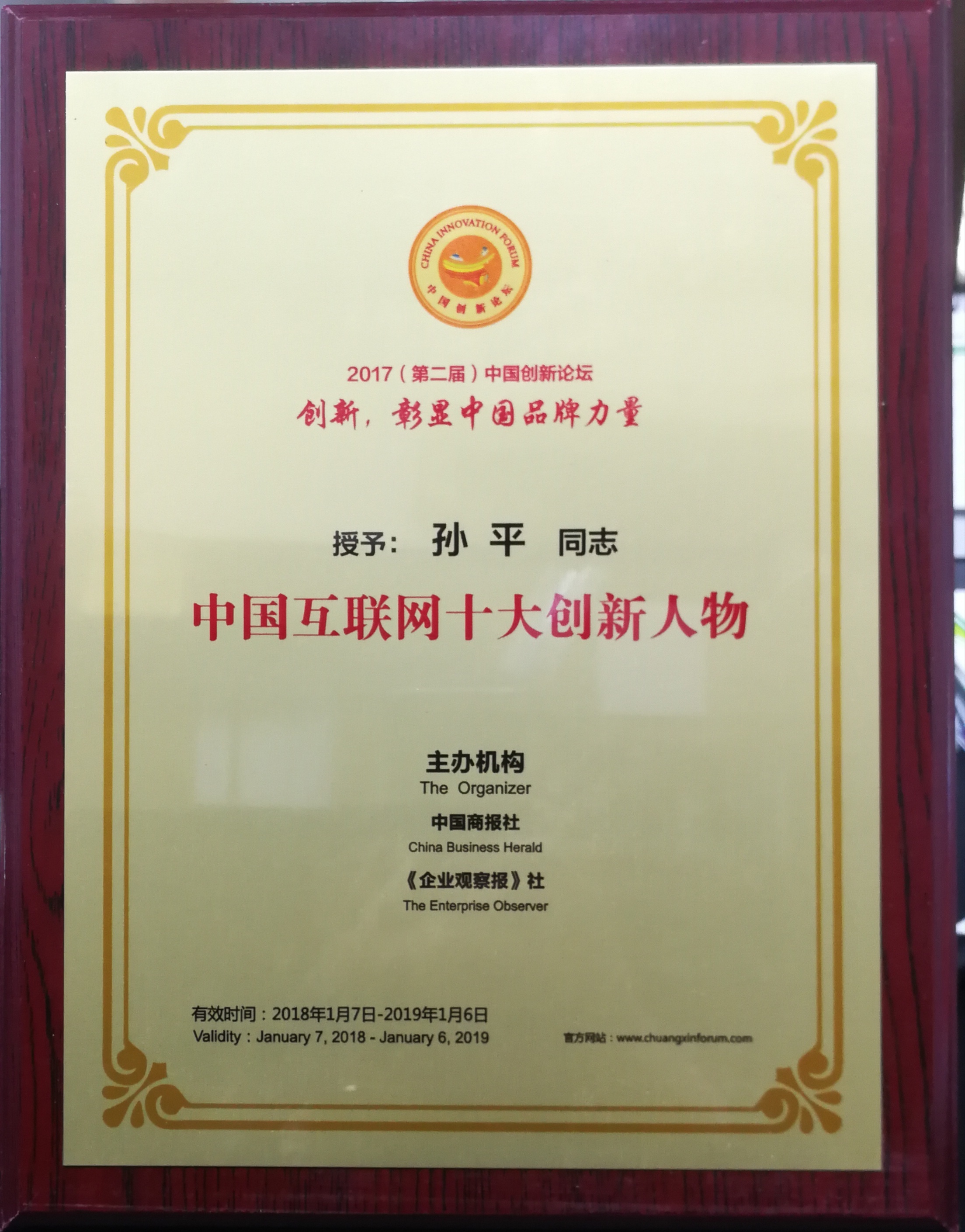 纵横有道首席品牌官孙平荣膺“中国互联网十大创新人物”。